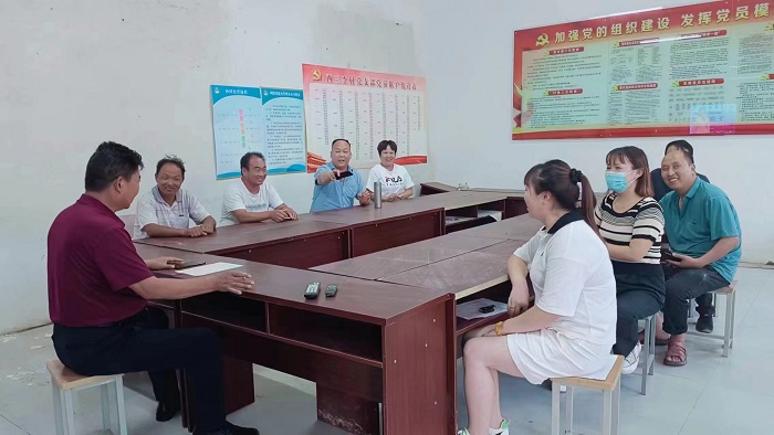 他常常一家一户的走访,不让一家有危机感,不管任何天气,只要有人反映情况,他都及时给予解决。