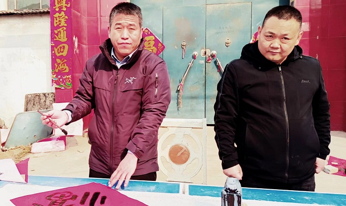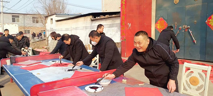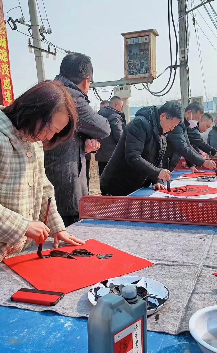 今年的正月十五元宵节,享有盛名的长垣市书法家协会副主席袁亚洲、鲁青艺术馆馆长张文相、长垣美术家协会主席石军周、长垣美术家协会副秘书长黄晓伟等文化名人及各界人士,回到村里参与元宵节活动。和父老乡亲一起,同写‘福’字,祝贺新春。